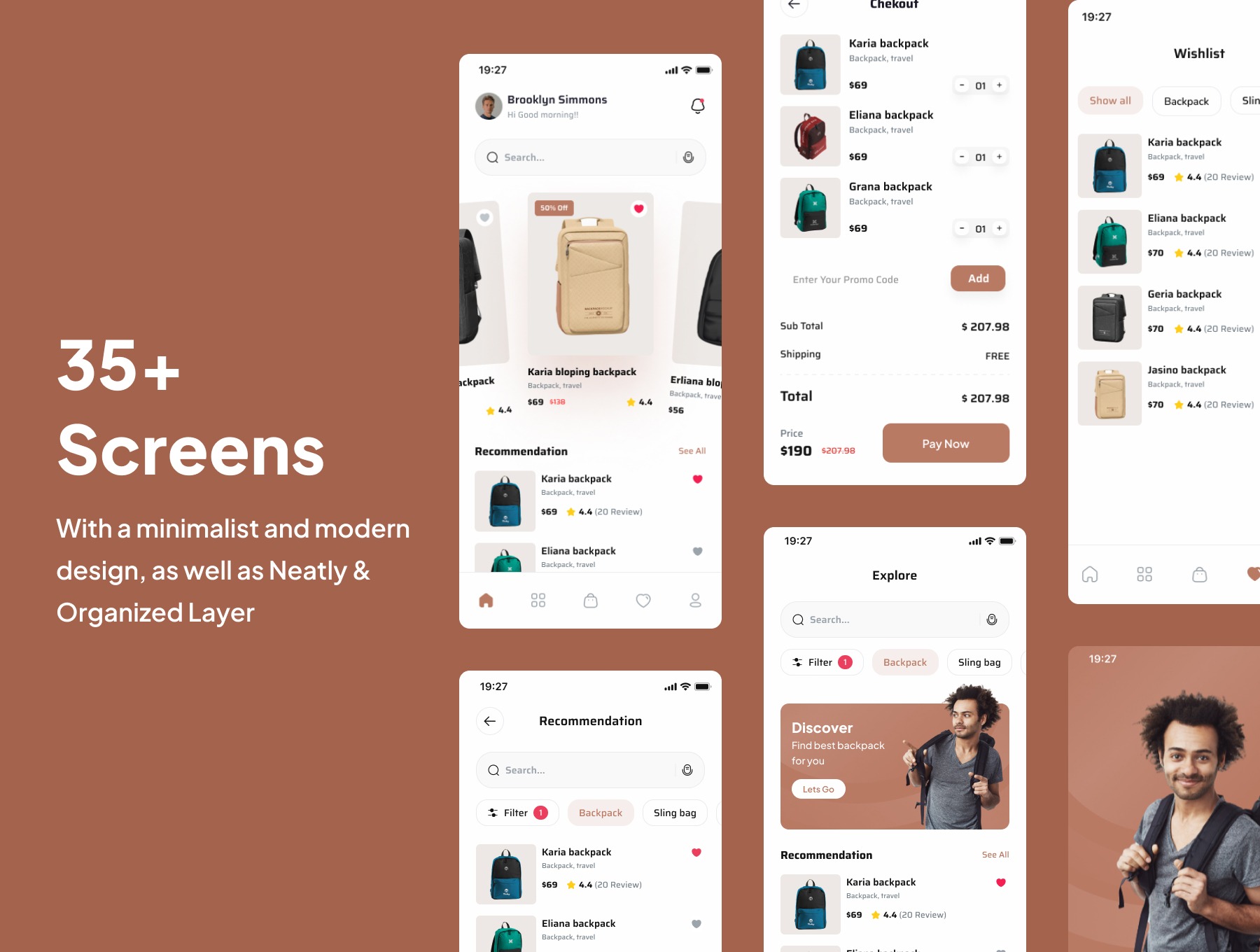 Bagishop a Minimaslist design UI Kits for Bag Shop E Commerce with 35+ screens.